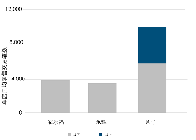 圖5傳統超市與盒馬單店日均零售交易筆數