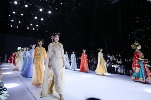 據悉,本次大秀以“融華”為主題,分別代表時尚和傳統的工藝及文化融合;匠心與本心的融合;多元化語言表達的融合;以及自然、精神和合之道。例如飾品將傳統的中式進行全新詮釋,把時尚元素與中國傳統的銜接、以及流行的元素與當下年輕人的需求融合在一起,通過例如豐富的工藝和材質,呈現出優雅精致的中式頭飾系列,奏響傳統和時尚和平共處的美好樂章。