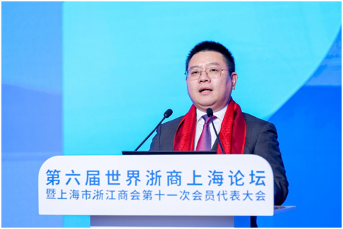郭廣昌做論壇總結。他一直踐行“知行合一”,他分享了對今年大環境、對企業應變策略的思考,提振浙商信心。(商會供圖)