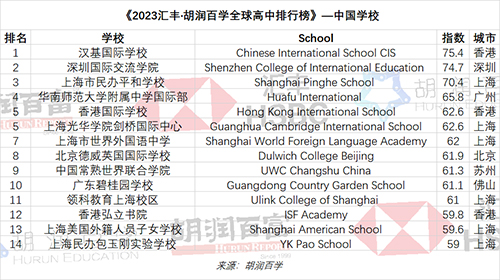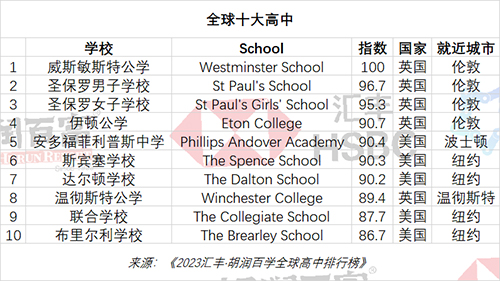 胡潤百學聯合匯豐發布首份“全球高中排行榜” 14所中國學校上榜
