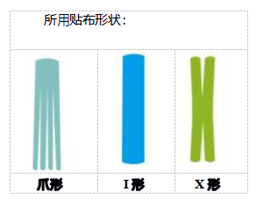 第?步感覺貼扎:踝關節背屈,五趾背屈。采??形貼布,將錨固定于跟?,以?然拉?(?拉?)沿?底向跖趾關節遠端延展,尾端?拉?固定于五趾跖?處。