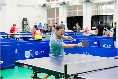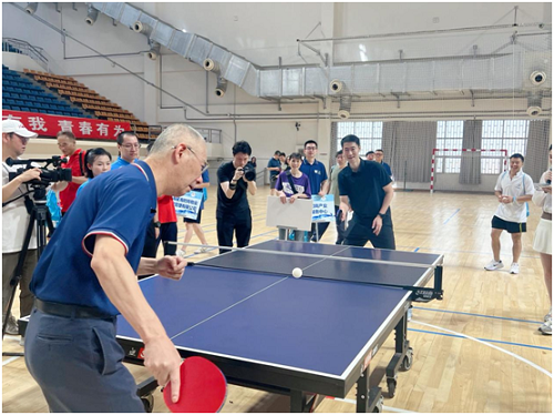 邀請賽的企業代表----上海嘉麟杰紡織科技有限公司楊世濱總裁表示:“希望更多專業運動選手加入到大眾的體育運動賽事來,促進產業共同繁榮?!睋?,這種乒乓球賽事將會繼續舉辦,為行業內人員搭筑交流合作平臺。(活動組織者供圖)
