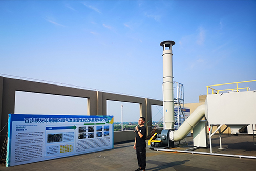 記者們參觀了園區并來到樓頂觀摩了設備“換碳”過程,對通過相對簡易的方法可以有效處理廢氣排放感到十分認可。印刷園區在產業穩步發展的同時,加大力度抓好廢水廢氣排放轉換,走出了一條產業發展與生態環保和諧共生、協調發展的新路子,非常值得借鑒推廣。