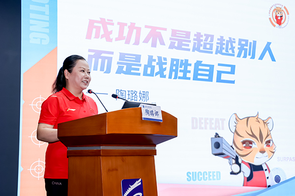 講座伊始,師生們跟隨視頻一起回顧了陶璐娜在2000年悉尼奧運會中奪得首金的精彩瞬間,同學們屏息凝神靜待致勝一槍,瓦缶雷鳴爆發奪冠歡呼。隨后,陶主任以“成功不是超越別人而是戰勝自己”為題進行了專題講座,回顧了自己帶傷帶病仍堅持訓練,回顧了勇奪金牌背后的努力、執著與付出;分享了人生最大的收獲——奧運精神、體育精神;分享了在競爭中突破自我的基石——調適心理,培養抗壓、抗挫折的能力。聽了陶主任的青春勵志故事,在場師生獲益良多。奧運冠軍不僅是一枚金牌,一項榮譽,還是一段成長,一份責任,一腔愛國情,一種民族自豪感。優秀運動員的堅韌品格感染了會場聽眾,體育偶像的榜樣力量激勵了青年學子。