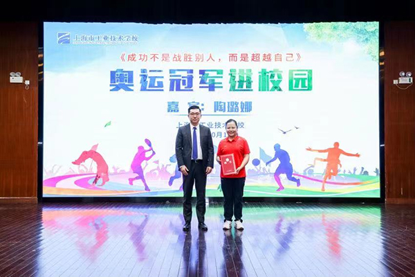 攬萬象山海,享亞運精彩,在剛剛閉幕的杭州第19屆亞運會上,中國代表團體育健兒奮勇拼搏、斬獲佳績、為祖國爭得榮譽,工技校學子觀賽熱情澎湃、校園體育氛圍持續高漲。為進一步弘揚亞運精神,鼓勵工技校學子胸懷祖國、追求卓越、頑強拼搏的精神追求,10月10日下午,學校開展“奧運冠軍進校園”活動,邀請到了2000年悉尼奧運會射擊冠軍、上海射擊射箭運動中心主任陶璐娜老師,為全校師生分享了奧運冠軍的成長歷程和人生收獲。學校黨委書記朱超、校長張偉罡及全校師生聆聽了報告,副校長談立群主持大會。