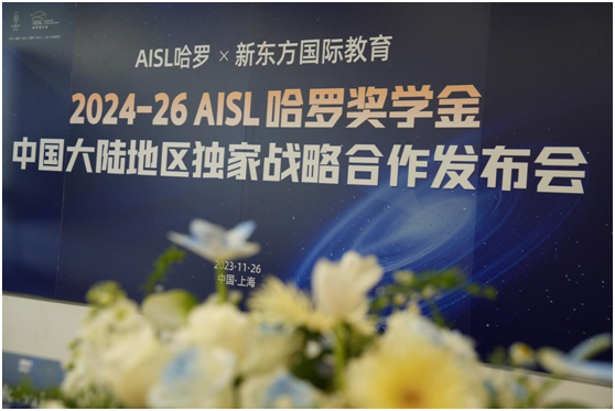 11月26日,新東方國際教育與AISL教育集團在上海舉行AISL哈羅獎學金中國大陸地區獨家戰略合作發布會。