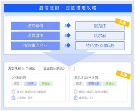 啟信數據基于國內2.3億家企業等組織機構的超過1000億條實時動態商業大數據,現已形成包含超過300條產業鏈、7萬個標準產品、4000萬家公司的數據庫,賦能“園區金融解決方案”,為銀行信貸提供個性化的技術及數據支持。通過相關產品,銀行可全景式查看園區信息,降低企業調研及分析門檻,確定重點企業(龍頭企業),劃分信貸服務優先級,實現批量化獲客,更高效地完成特色產業布局,發揮金融“輸血”作用。