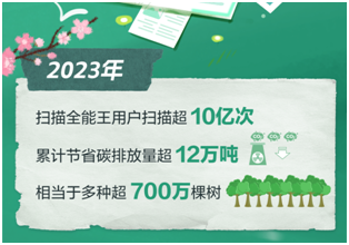 掃描全能王用戶2023年一起減碳超12萬噸,折算種樹700萬棵