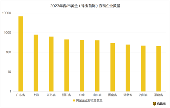 合合信息旗下啟信寶,日前基于產業鏈數據庫,對黃金珠寶企業的存續情況、新增情況、區域表現等數據,進行分析洞察,通過商業大數據,幫助各界人士研判黃金珠寶產業發展前景。