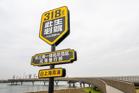 繼2023年3月在有6000年歷史的上海之源—上海崧澤遺址博物館樹立了青浦第一塊官方認證的“此生必駕318”打卡牌,6月在國家會展中心樹立了第二塊打卡牌,今年“318青浦旅游日”第三塊打卡牌在長三角一體化示范區元蕩橋畔落地。