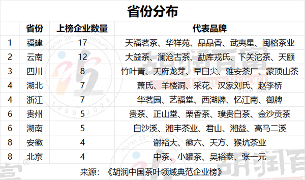 2024年3月27日,胡潤研究院在福建福鼎發布《胡潤中國茶葉領域典范企業榜》(Hurun Top Chinese Tea Companies),列出了中國茶葉行業具有典范作用的80家企業。這是胡潤研究院首次發布該榜單。
