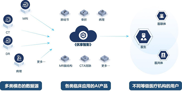 “優享智影”醫療影像AI云平臺通過健康醫療領域公共數據授權運營,建立專病影像標注數據庫,搭建醫療AI模型的研發、訓練、驗證等深度學習環節,憑借集中化應用、全流程的診療一體化解決方案,為醫療機構影像科及臨床科室醫生等提供醫學影像AI模型輔助診斷服務,從而推動區域整體診療能力同質化提升。同時,平臺搭載用于AI算法集成和集中化工作流程管理的全套應用程序,打破傳統應用場景間的界限,降低算力資源的重復投入;利用可擴展的方式,將AI技術無縫嵌入到醫院或影像科的基礎設施架構和各類工作流程中,有效提升醫生閱片效率及準確率。此外,隨著平臺的推廣應用,可同步建設AI應用生態,實現產業上下游資源高效整合,推動健康產業數字化轉型升級。