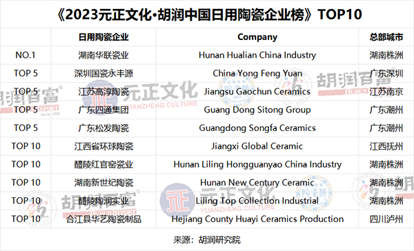 4月17日,胡潤研究院攜手元正文化在上海發布《2023元正文化·胡潤全球十大藝術陶瓷城市》,列出了全球最具典范價值的十大藝術陶瓷城市。同時發布《2023元正文化·胡潤中國日用陶瓷企業榜》。這是胡潤研究院首次發布陶瓷領域相關榜單。