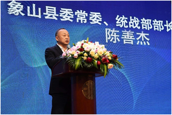浙江象山縣縣委常委、縣統戰部部長陳善杰,在發言中,稱贊在滬的象山企業家,是象山在外群體里,最具規模的群體,通過主動融入長三角的一體化發展,積極參與上海五個中心的建設,專注實業、深耕主業、拼搏創業,在上海闖出了一片新天地,樹立了一幅新面貌,書寫了一段新傳奇。