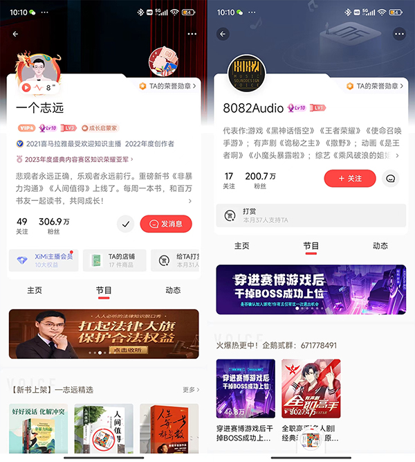 公開數據顯示,2022年自喜馬拉雅獲得超過10萬以上報酬的PUGC創作者,有94.8%于2023年繼續創作并上傳音頻內容。