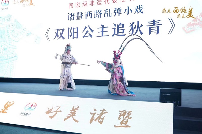 在領略諸暨自然風光的同時,西路亂彈表演《雙陽公主追狄青》、器樂重奏《墨梅》等節目輪番上演,呈現出古越文化、非遺文化的碰撞與融合,形成西施文化的美美與共。
