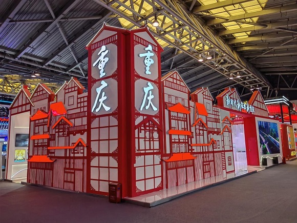 遠遠看去,重慶館主色調為紅色,外形突出重慶文旅地標洪崖洞和8D城市元素,很是吸睛。走進重慶館,展覽以分區布局營造出豐富多變的空間層次,展示制造、設計、建筑、山水、美食、人文、開放、質量8個品牌維度。在這聲光璀璨的重慶館里,究竟有哪些品牌驚艷亮相?