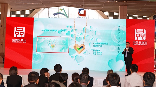中國珠寶副總經理李志勇,宣講了“只此青綠·宋韻金”系列新品。近年來,“中國珠寶”品牌持續深耕中華美學,著力推動中華優秀傳統文化創造性轉化和創新性發展。繼2023年推出備受消費者喜愛的“只此青綠”IP系列產品后,在本次活動中,再次顯示了產品線的升級,以國潮新品展現文化自信,“只此青綠·宋韻金”系列新品以享譽世界的宋瓷作為核心設計理念,意蘊深遠,彰顯了東方文化獨有的知性闊達、含蓄睿智之美,突出彰顯“中華美學珠寶”的品牌定位。