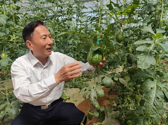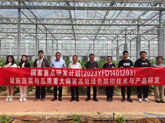 山東農業大學王開運教授團隊成員—王紅艷副教授承擔的設施蔬菜與瓜果重大病害高效綠色防控技術與產品研發項目(2023YFD1401203)在棗莊圣道農業產業園開展農業科研。(圣道農業供圖)