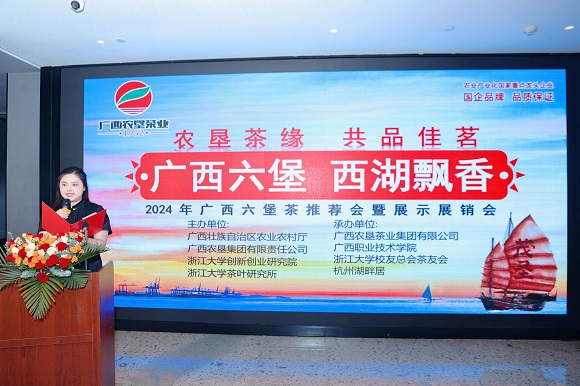為進一步提升六堡茶在江南茶區的知名度與影響力,2024年5月18日下午,由廣西壯族自治區農業農村廳、廣西農墾集團有限責任公司、浙江大學創新創業研究院、浙江大學茶葉研究所共同在杭州湖畔居茶樓舉辦廣西六堡茶品鑒會。廣西壯族自治區農業農村廳副廳長韋波、浙江大學校友總會副會長、創新創業研究院副理事長張美鳳等茶產業主管部門領導、研究機構專家學者、行業協會代表、茶企客商及眾多杭州茶友共同出席了品鑒會。