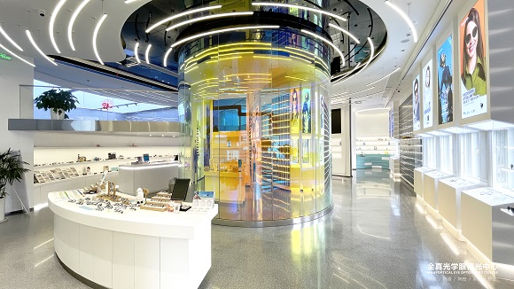 眼視光中心集中展示了各類眼鏡鏡框,以及全真光學的特色產品——變色鏡片,可在不同光線下自動調節顏色,提供更好的視覺體驗和舒適性。同時,眼視光中心設有眼視光檢查區和3D打印區。眼視光檢查區配置了數碼裂隙燈、綜合驗光儀、生物測量儀、眼底照相機等設備,可提供專業的眼表檢查、醫學驗光、兒童近視預測等服務;3D打印區的專業設備可掃描人臉相關參數,提供私人定制服務,制作出更輕便、更貼合人臉的鏡框。