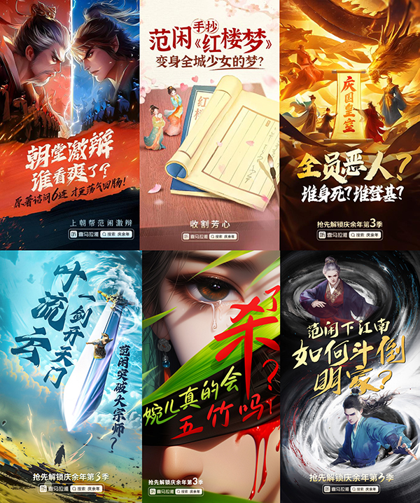 喜馬拉雅特別上線了《慶余年2》的主題活動頁面,將《慶余年》相關的收聽版本、音頻節目、話題周邊、播客種草匯聚在一起,并且制作了50張精美的二次元海報,吸引站內外用戶。