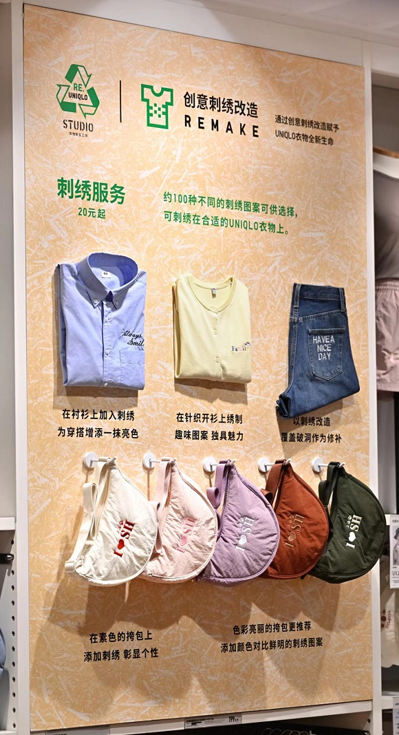 修補舊衣讓衣物煥發新生;刺繡改造為衣服增添新趣。今天(6月5日)是世界環境日,優衣庫鼓勵您打開衣櫥,拿出閑置的優衣庫衣物,前往優衣庫上?;春B啡蚱炫灥?樓的RE.UNIQLO衣物新生工坊,讓那些被遺忘的衣服煥發新生、增添新意。環保并非遙不可及,從日常穿著開始,讓我們一起愛時尚·愛地球!