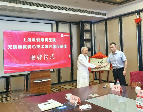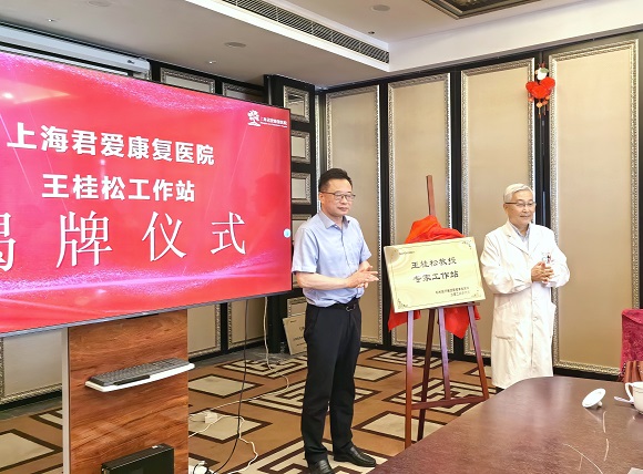 上海君愛康復醫院法金生院長和王桂松教授共同為“無??祻吞厣夹g研究應用基地”和“王桂松教授專家工作站”揭牌,雙方合作的正式落地啟動。