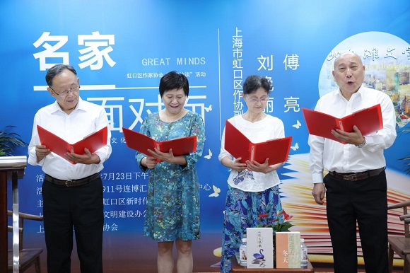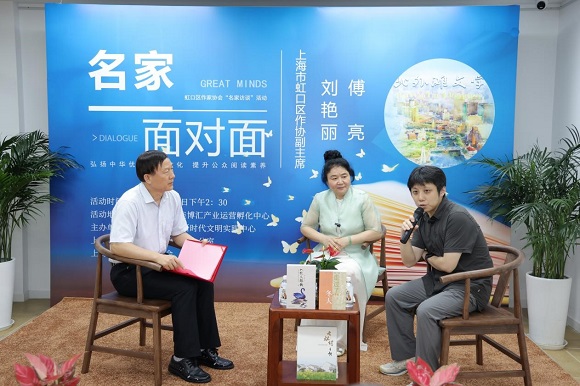 近日,上海市虹口區新時代文明實踐中心、上海市虹口區精神文明建設辦公室、上海市虹口區作家協會共同主辦的第二期“面對面·名家訪談”活動成功舉辦?;顒友埩撕缈趨^作家協會副主席劉艷麗、副主席傅亮兩位名家訪談;虹口區文聯副主席、虹口區作家協會常務副主席袁興金主持活動。