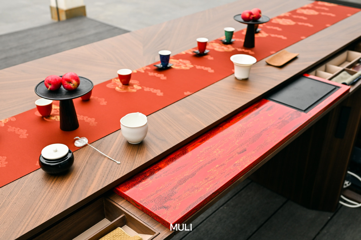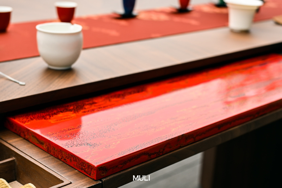 作為中國國家畫院訪問學者和巴黎設計周中國周特邀藝術家,龍一老師將非遺文化的大漆工藝與國潮、時尚和藝術結合起來,與木里木外共創了大漆茶桌、大漆餐桌、大漆茶具等作品,讓大漆煥發新生,又賦予現代家居深厚的文化內涵與藝術魅力。